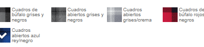 Cuadros abiertos gris/crema, Cuadros abiertos grises y negros, Cuadros abiertos negros/reales, Cuadros de búfalo grises y negros, Cuadros de búfalo rojos y negros