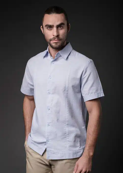 La Camisa Habana es la definición de confort sofisticado para el ambiente laboral casual. Inspirada en la frescura del Caribe, esta prenda imita el estilo lino gracias a su confección de alta calidad, garantizando transpirabilidad y una sensación ligera para el clima cálido.
